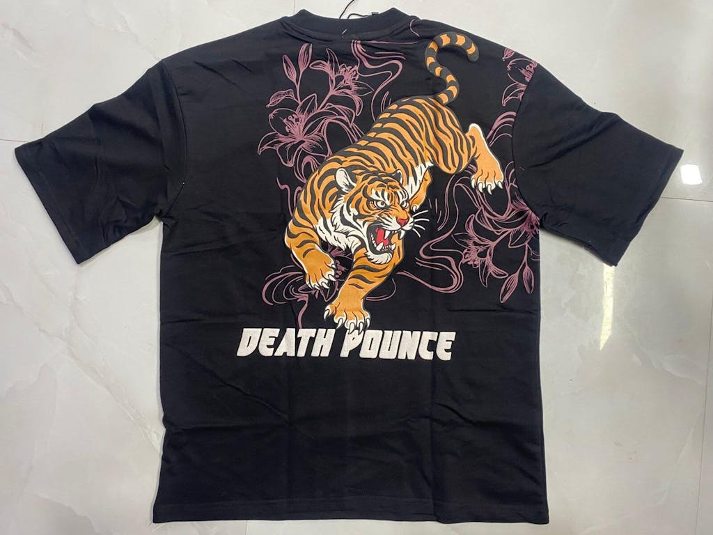 The “Death Pounce” text below the design enhances the fearless theme, making it perfect for those who love powerful, edgy streetwear. The oversized back print gives it a standout look, ideal for casual styling with jeans or cargo pants.