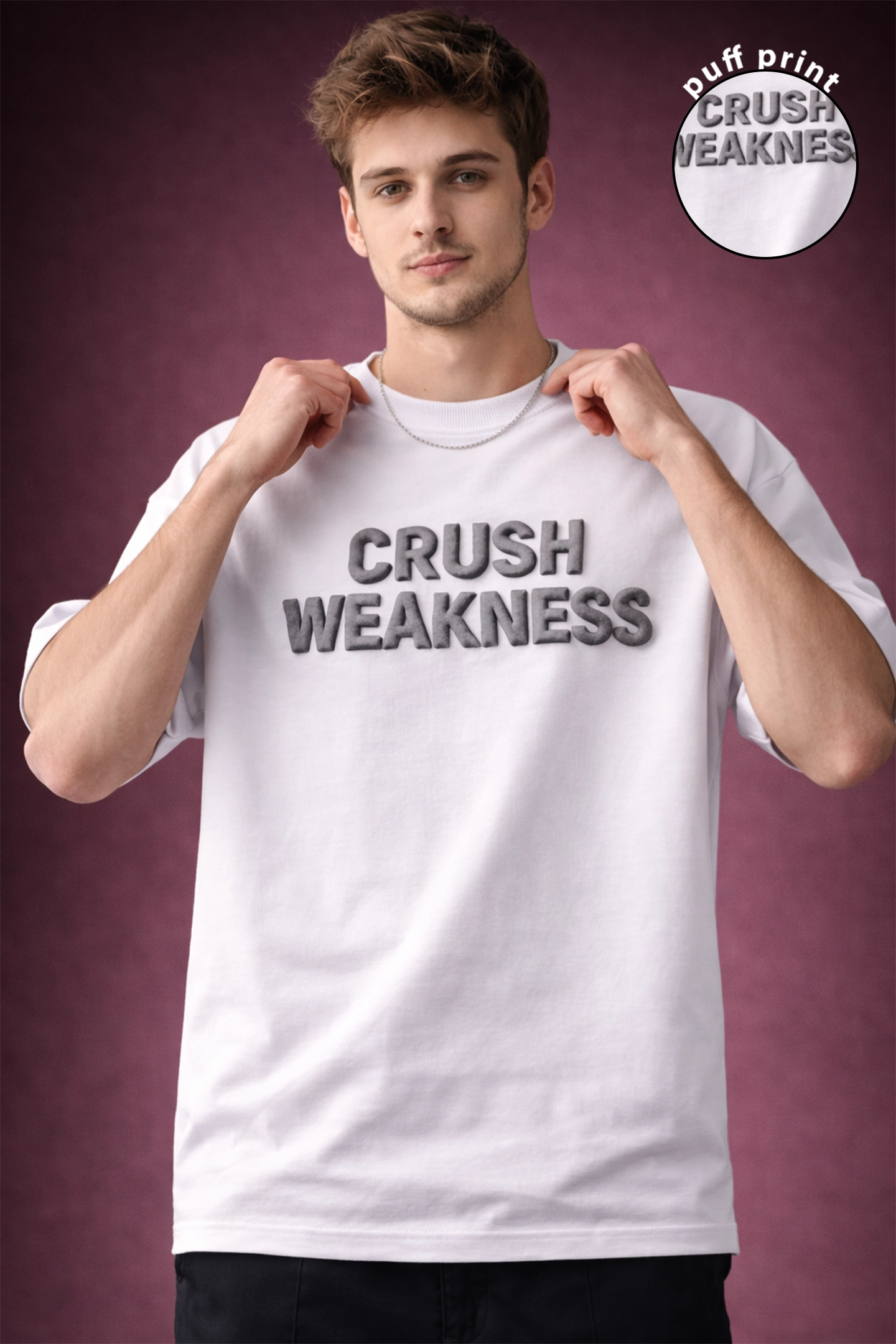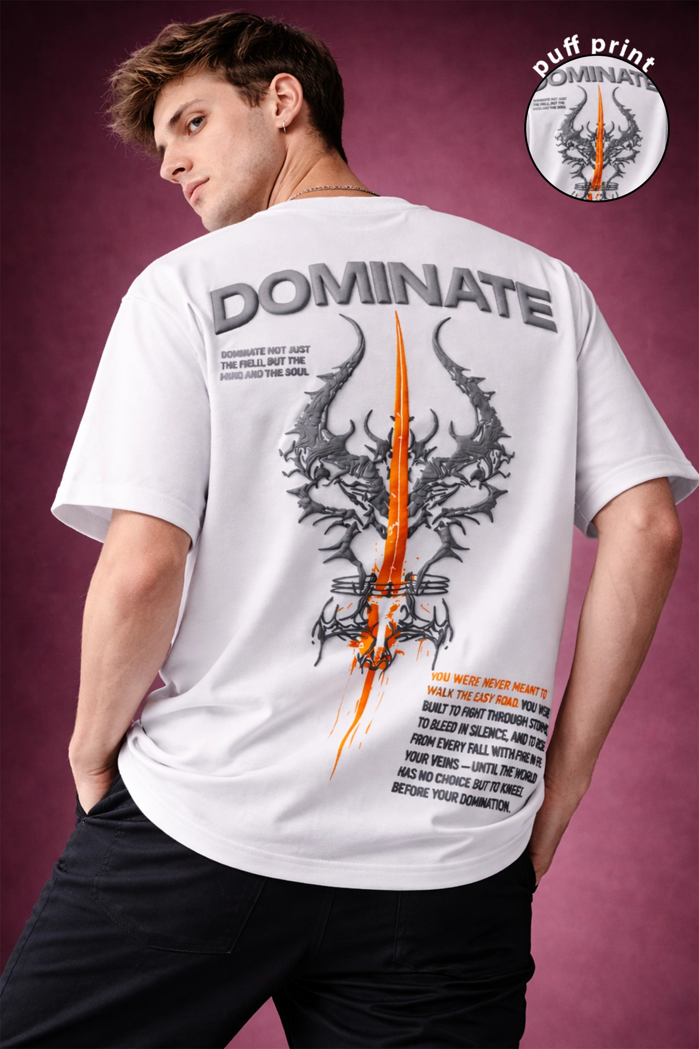 Crafted for modern Indian men who live in oversized fits, clean silhouettes, and bold statements, this T-shirt blends comfort with cutting-edge fashion. Whether you’re stepping out with friends, hitting a casual party, or creating content for the ’gram, this puff print tee makes sure all eyes stay on you.