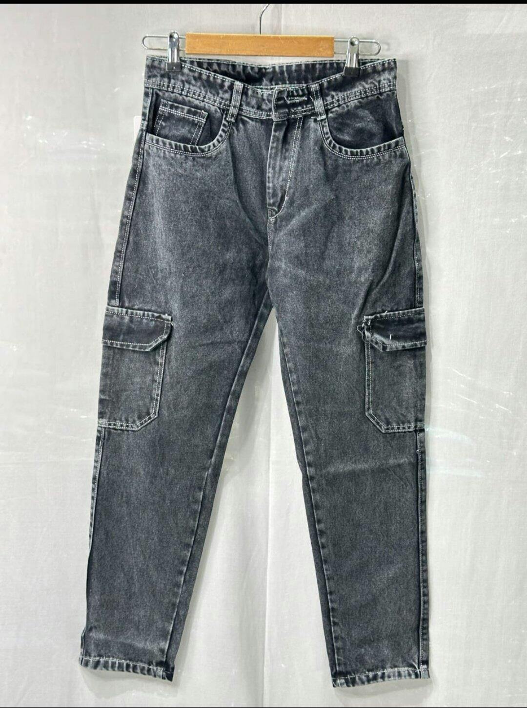 Step up your streetwear game with these rugged yet stylish Washed Black Cargo Denim Pants. Crafted from durable denim with a soft, lived-in wash, these pants offer a relaxed tapered fit that balances comfort and edge. Featuring classic five-pocket styling plus dual cargo pockets on each leg for extra functionality, they're perfect for urban explorers or casual everyday wear.