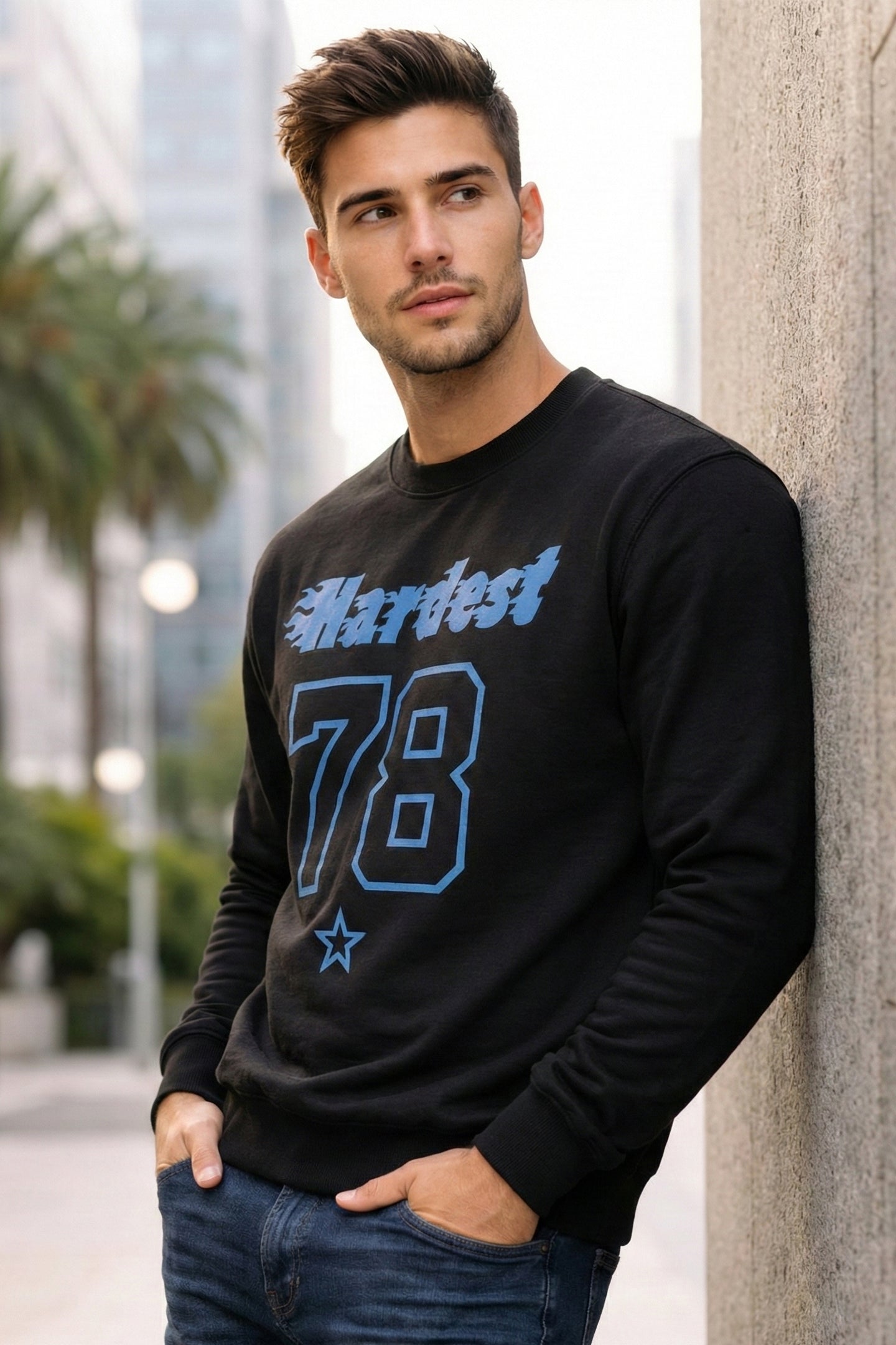 The clean, eye-catching graphic print adds a strong statement while maintaining a refined look. Perfect for men who like their outfits simple but impactful, this sweatshirt works effortlessly for day-to-day wear, travel, and relaxed evenings.