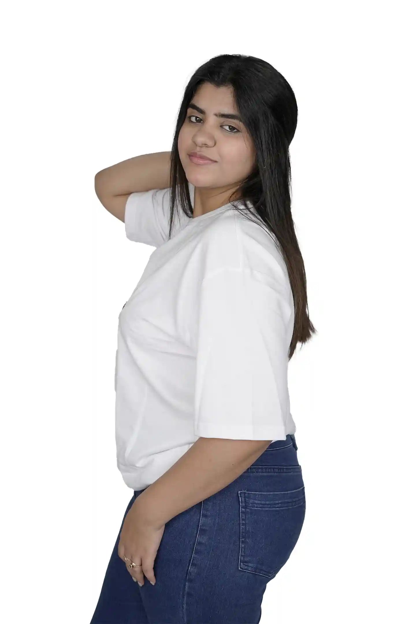 Whether you’re heading to college, a café date, a creative workspace, or a weekend outing, this embroidered oversized T-shirt fits seamlessly into your wardrobe. It’s a go-to piece for women who want fashion that feels effortless yet intentional.