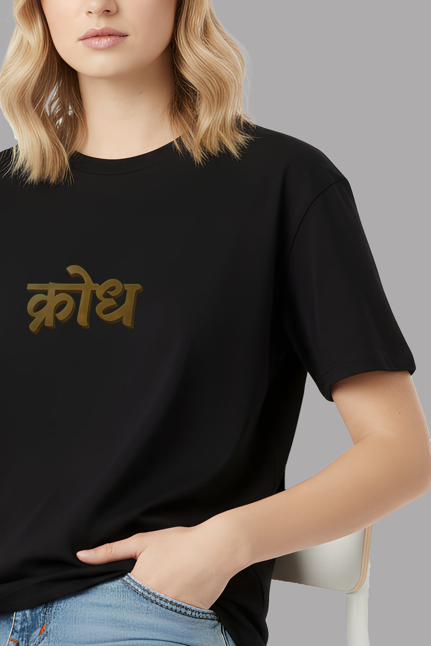 This t-shirt is such a cool find! The “क्रोध” print really stands out — it gives that bold, powerful look. The fabric feels great on the skin and fits perfectly. I’ve washed it twice, and the print still looks new. Totally worth it!