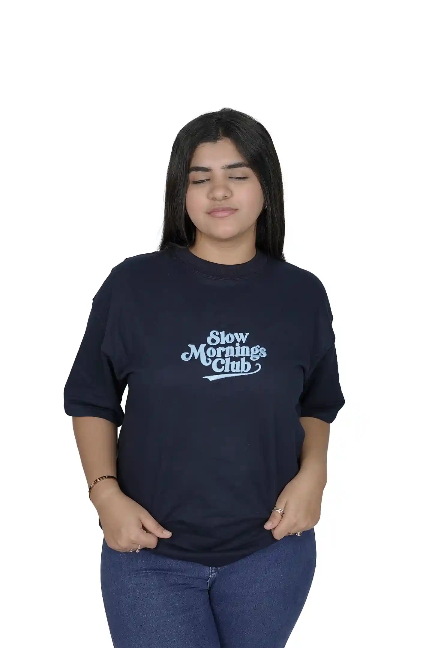 Whether you’re heading to college, a café date, a creative workspace, or a weekend outing, this embroidered oversized T-shirt fits seamlessly into your wardrobe. It’s a go-to piece for women who want fashion that feels effortless yet intentional.