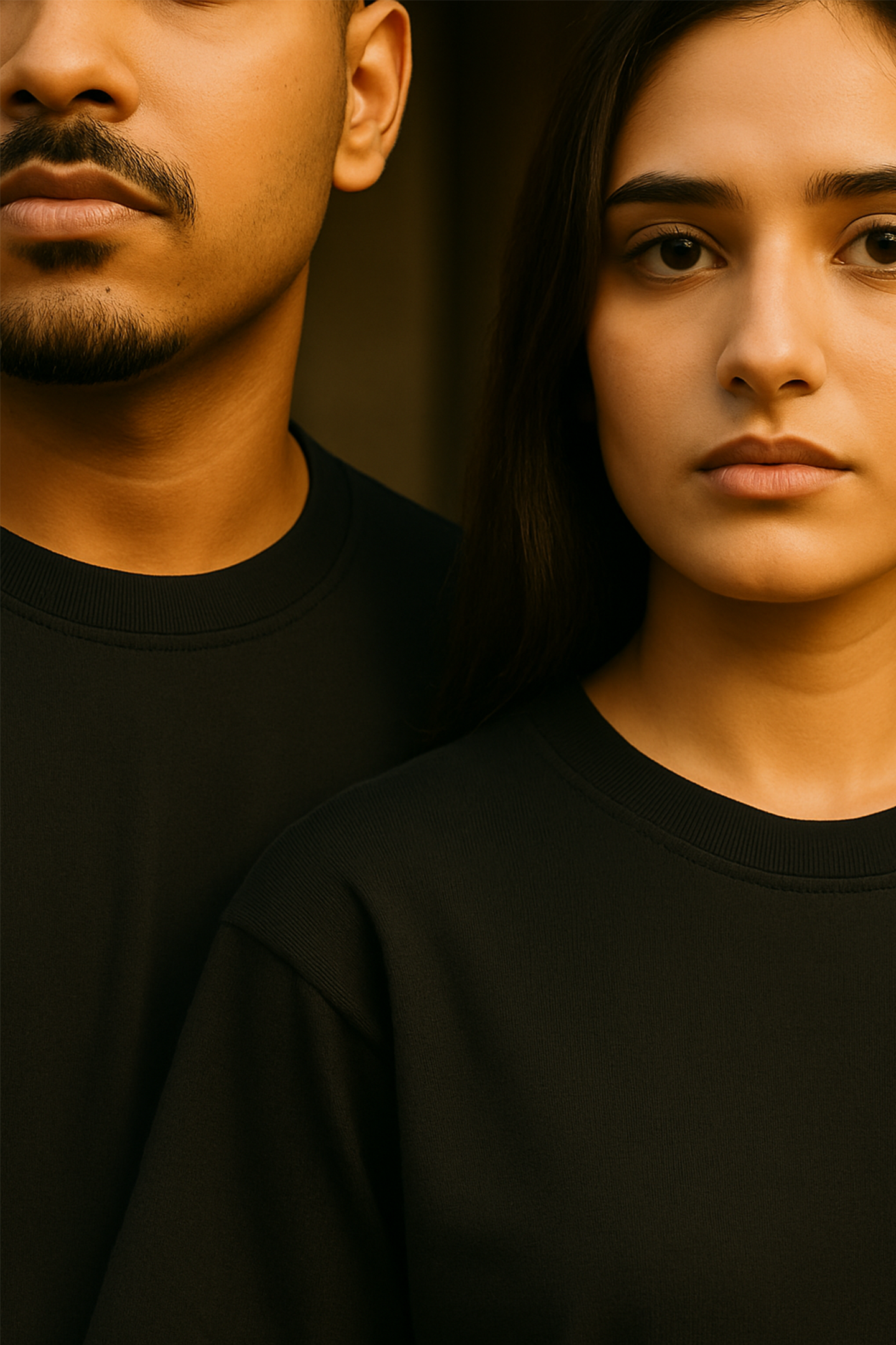 ✔️ 100% Premium Cotton – Made from high-grade combed cotton, our couple tees are soft, breathable, and ultra-comfortable. Feel the luxury of 200 GSM heavy premium fabric, perfect for all-day wear.